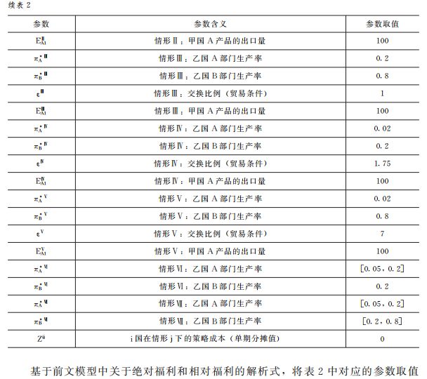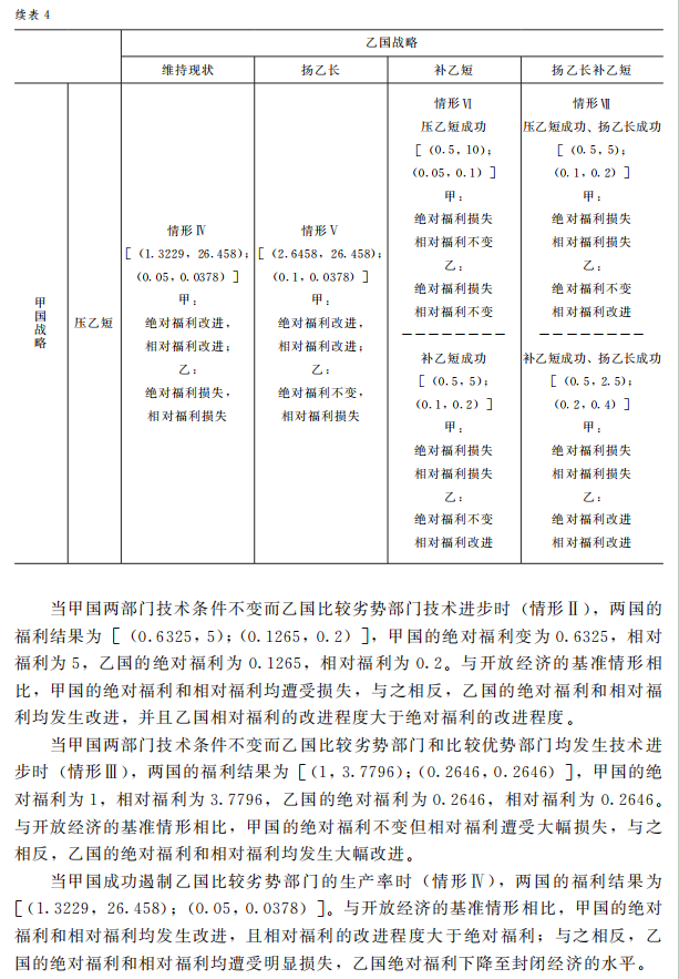 第三,在先发国家各部门生产率不变的前提下,先发国家全力压制后发国家比较劣势部门生产率、鼓励或放任后发国家提升比较优势部门生产率的“压彼短扬彼长”战略是先发国家在大国博弈背景下维护绝对福利与相对福利双重改进的最优选择,提升后发国家优势部门生产率会产生贸易利得的增长效应,同时提高两国的绝对福利水平,而压制后发国家劣势部门生产率则会巩固先发国家在国际经济体系中的权力获取和分配优势,提升先发国家的相对福利水平。