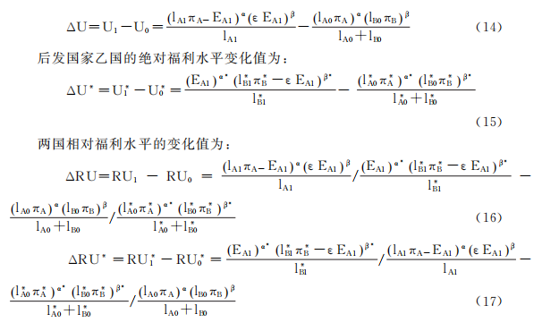 显然,经典贸易理论忽视了大国博弈背景下国家行为体对权力要素和相对福利的高度重视。一旦考虑博弈对手或力量对比,仅仅关注福利的绝对改进显然不够充分,必须将自身与对手或竞争者总体实力之差异纳入视野。这样一来,国家行为体的目标函数就包含双重内涵,即绝对福利与相对福利“双重改进”并最终实现“双重效率”。