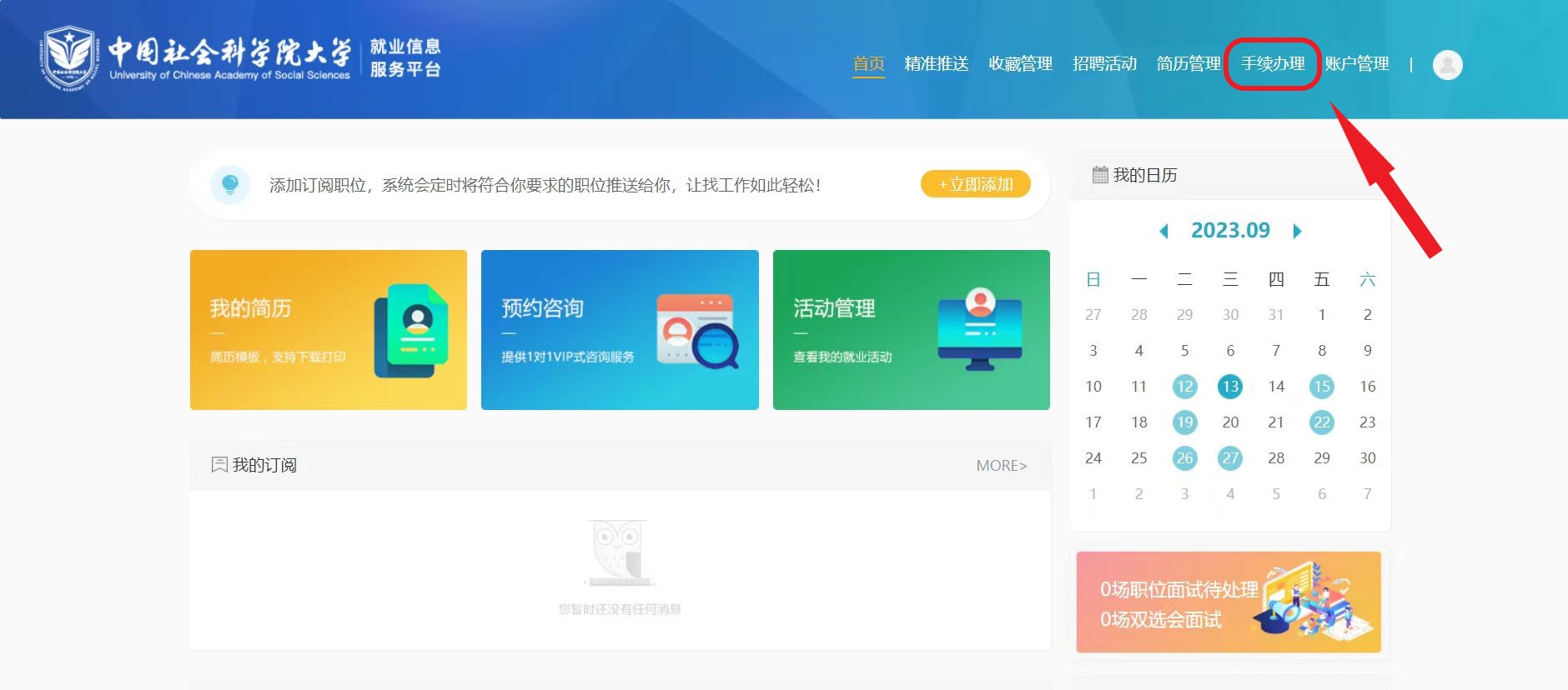毕业生在电脑端登录中国社会科学院大学“就业信息服务平台”,