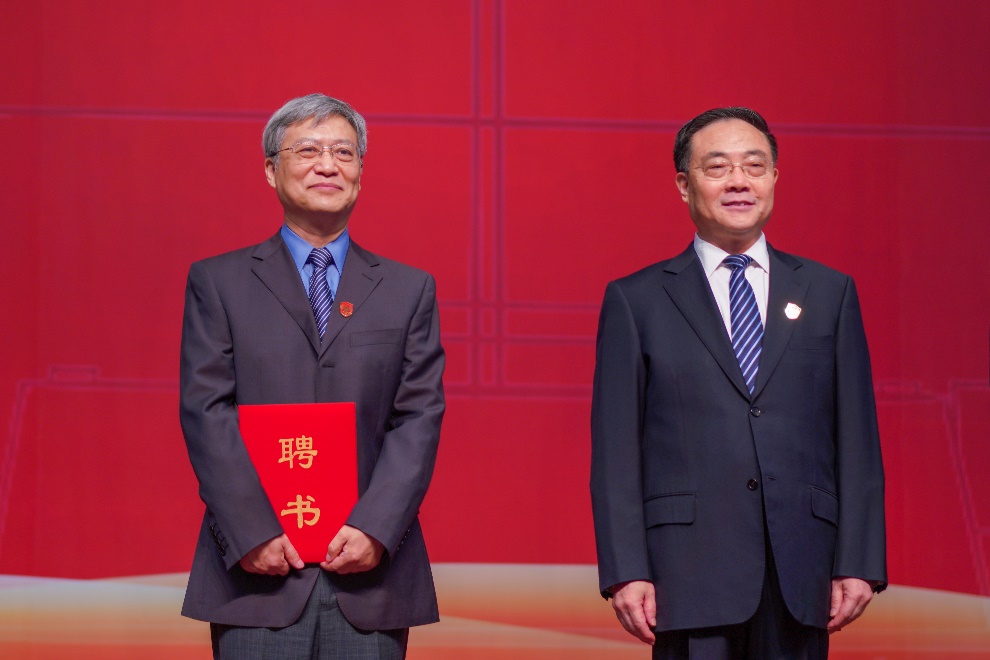 (中国会科学院副院长、党组副书记兼中国社会科学院大学党委书记王京清向世界经济与政治研究所所长张宇燕研究员颁发国际关系学院院长聘书)