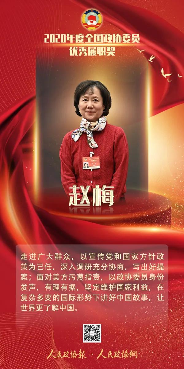 在工作中,赵梅教授以走进广大群众,宣传党和国家方针政策为己任,深入调研充分协商,写出好提案;面对美方污蔑指责,以政协委员身份发声,有理有据,坚定维护国家利益。