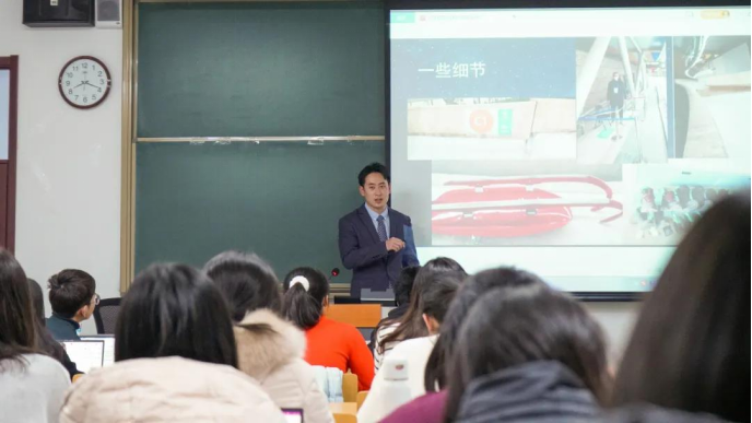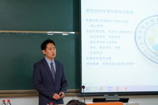 季成老师还介绍了冰上运动、雪上运动的类型、起源和发展历程,并以视频播放形式使在场听众以第一视角沉浸式体验雪车赛道,全方位向大家展示了我国延庆雪道的全貌。季成老师讲到,其作为我国的第一条雪车赛道,在规模和设施的先进性上都处于世界领先地位,不只对于我国,乃至对东亚周边国家都具有着重要意义,显示了我国在举办冬奥会的能力和优势。
