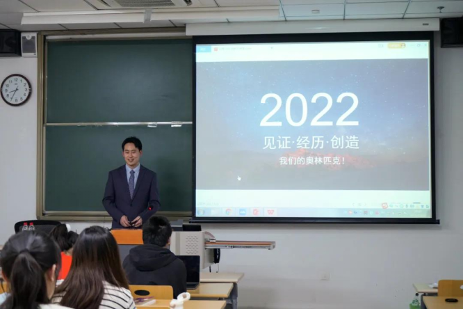 季成老师从亲身经历出发,生动讲述了冬奥准备工作的细节,强调北京冬奥集体决策发挥的重要作用,指出冬奥需要“懂业务、懂外语、懂管理”的复合型人才。他向大家展示了自己在参与筹备期间排满的日程表和辛苦复杂的工作内容,并分享了自己所遇到的印象深刻的工作经历。