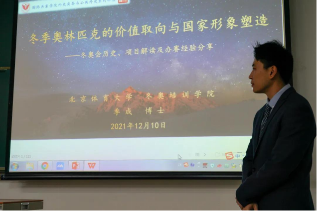 讲座中,季成老师首先以诙谐幽默的语言回顾了百年冬奥的发展流变,并在分析奥运会成功因素的基础上,阐释了后疫情时代北京举办冬奥的优势。他指出,经过长期的探索和改革,冬奥会发展至今,竞赛项目不断增加,整体发展日趋体系化和制度化,并融入了多元价值。2022年北京冬奥会的召开将具有划时代的意义,有利于东亚文化注入奥林匹克基因,承担着在疫情之后重振世界文明之任,彰显我国的包容创新与世界的多元发展。
