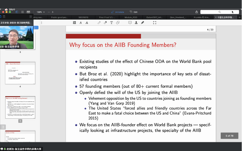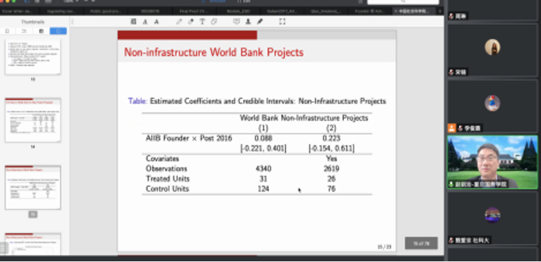 最后,他从美国对多边开发银行涉华项目的投票角度进行分析,研究中美双边关系如何影响多边开发银行的项目,探寻美国对多边开发银行涉华项目投票行为的决定性因素,思索中美双边关系如何影响多边援助,并提出了对该研究的未来展望,为各为听众呈现了精彩的报告。