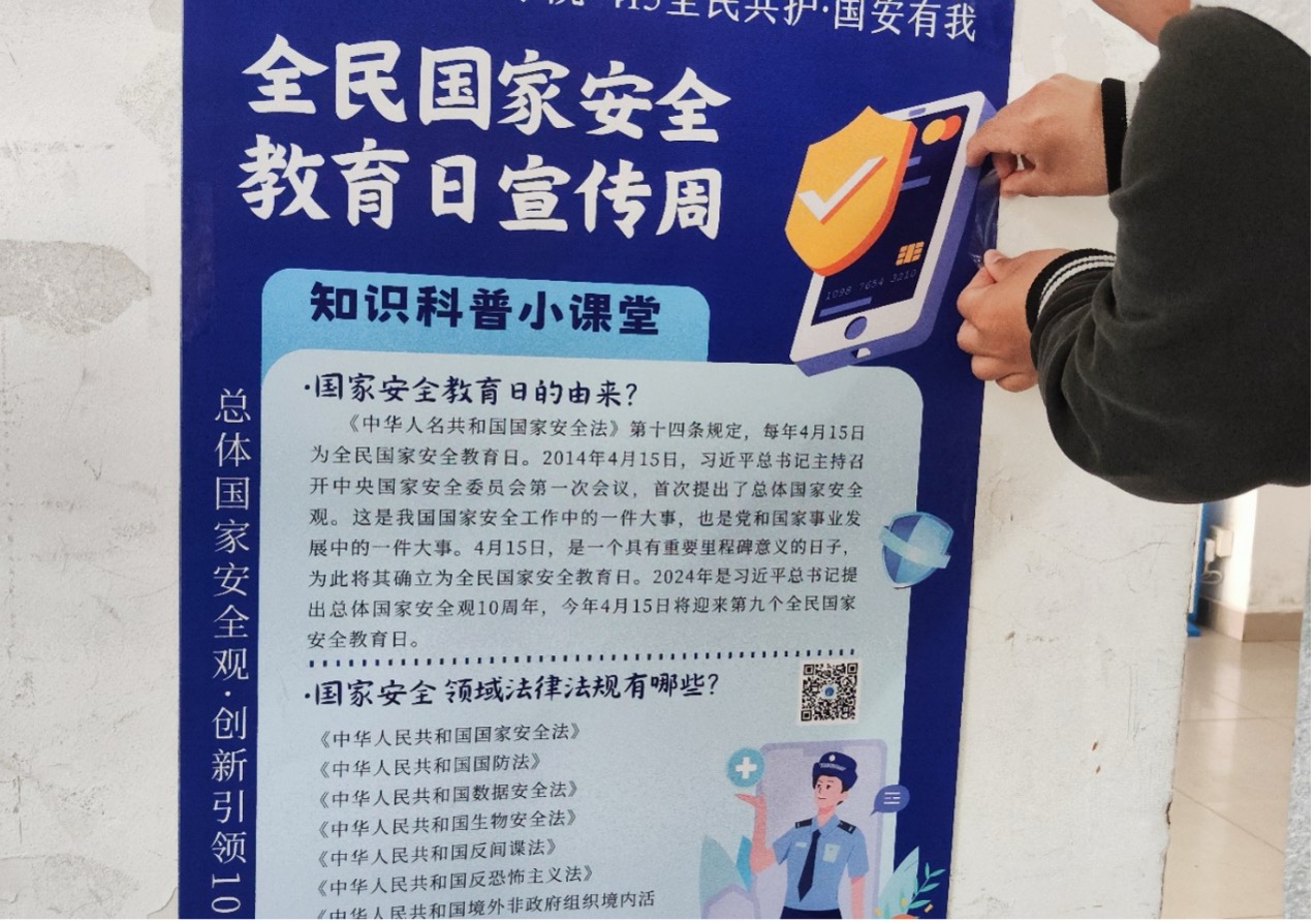 在校宣传部、校团委的大力支持下通过校内宣传栏张贴海报,学院微信公众号发送推文等方式,向全校师生分享国家安全知识,在校园内营造了浓厚的国家安全教育氛围。