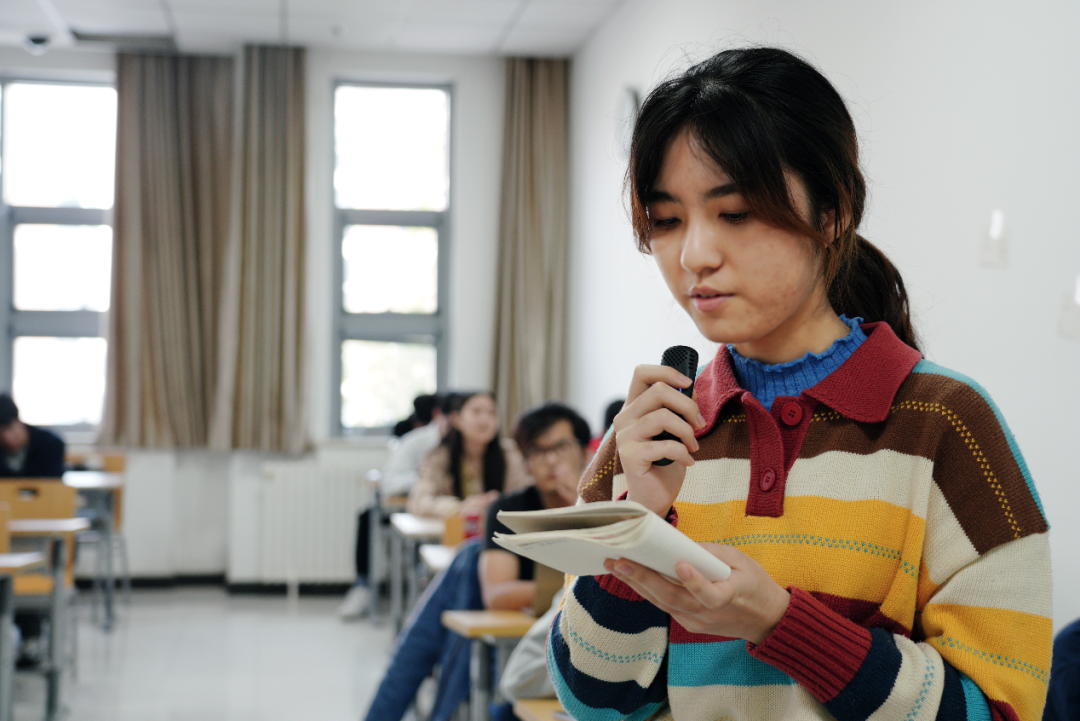 在熊老师发言后,学院大四学生唐晴围绕“为什么要学”与“怎么去学”两个方面分享了个人学习经验:在知识上,着重掌握有关专用名词的确切含义,并用之更好地理解国际新闻与国际事务。在方法上,学好高数类课程,注重宏观把握,理解最核心的观点,多看教材、多问老师,敢于提出自己的不解,并在课下及时通过询问或网上自学查漏补缺,逐渐完善自己的知识体系。